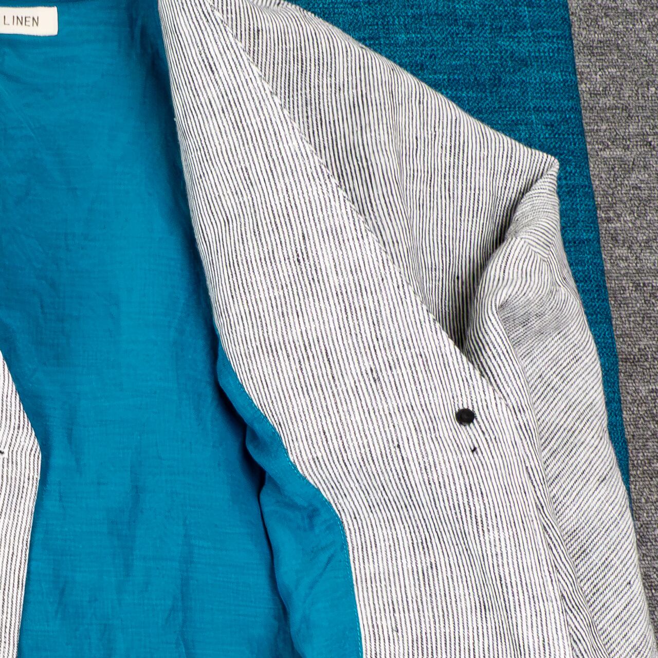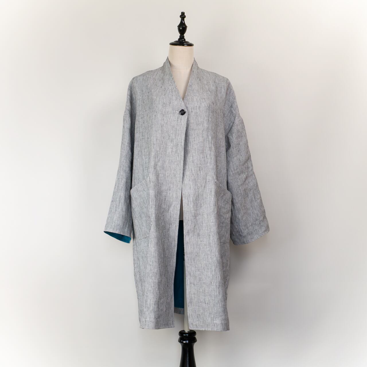 クールビビッドなリネンガウン【ヒッコリーストライプ×ターコイズ】