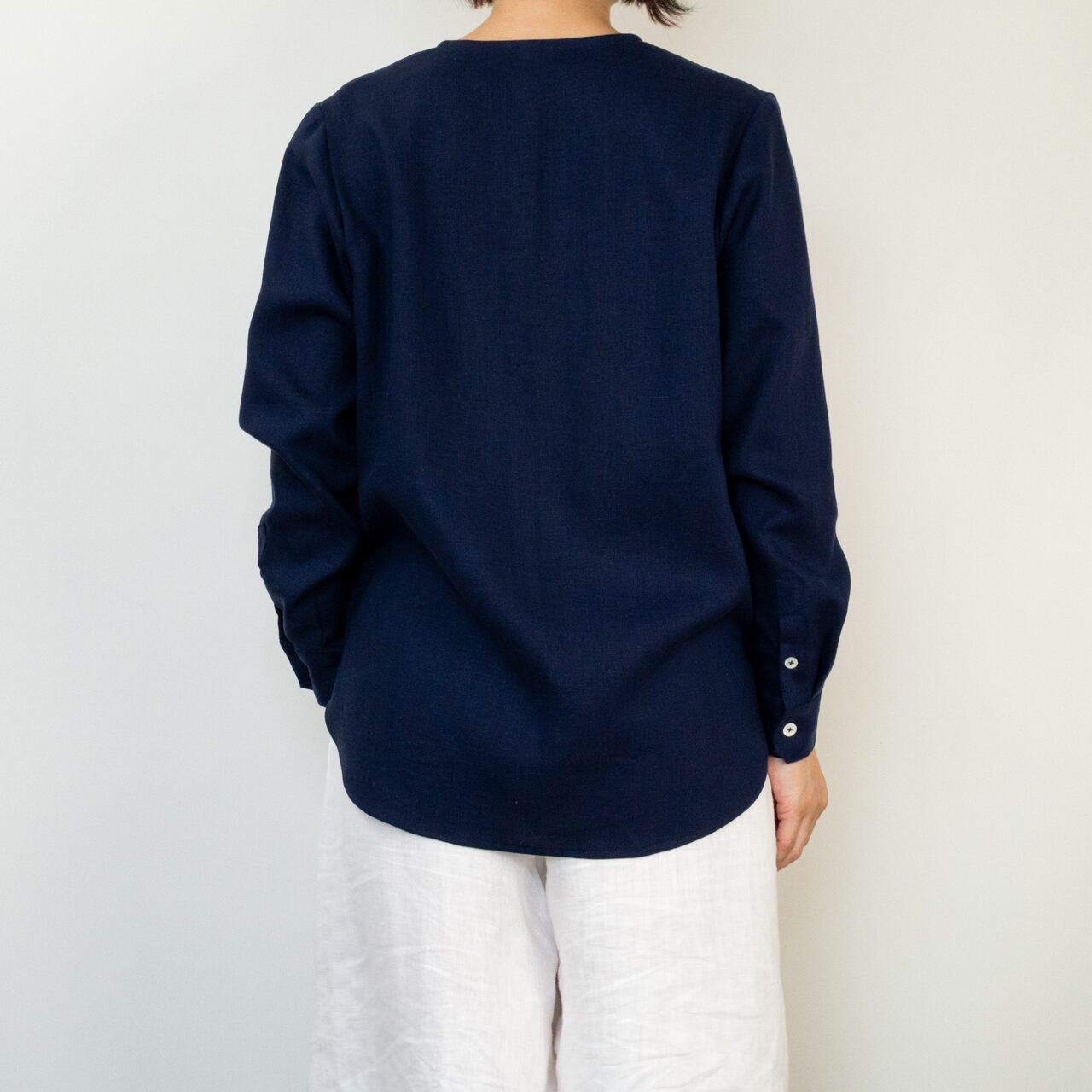 クールなミニマルリネンシャツ【ミッドナイトブルー】