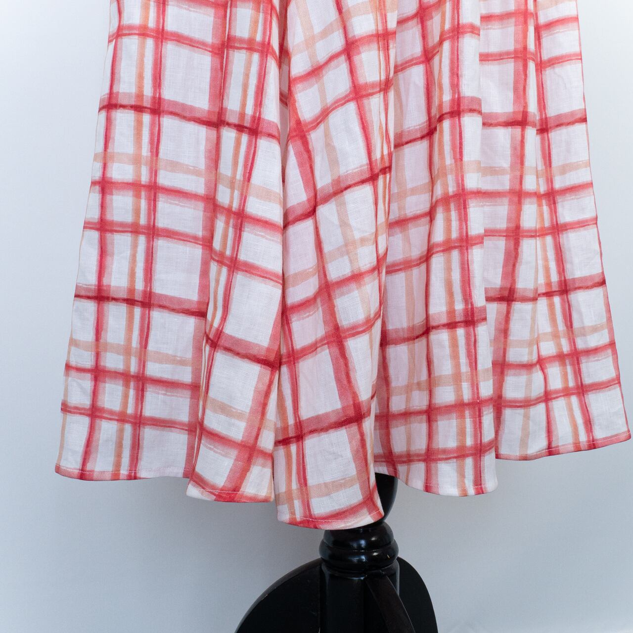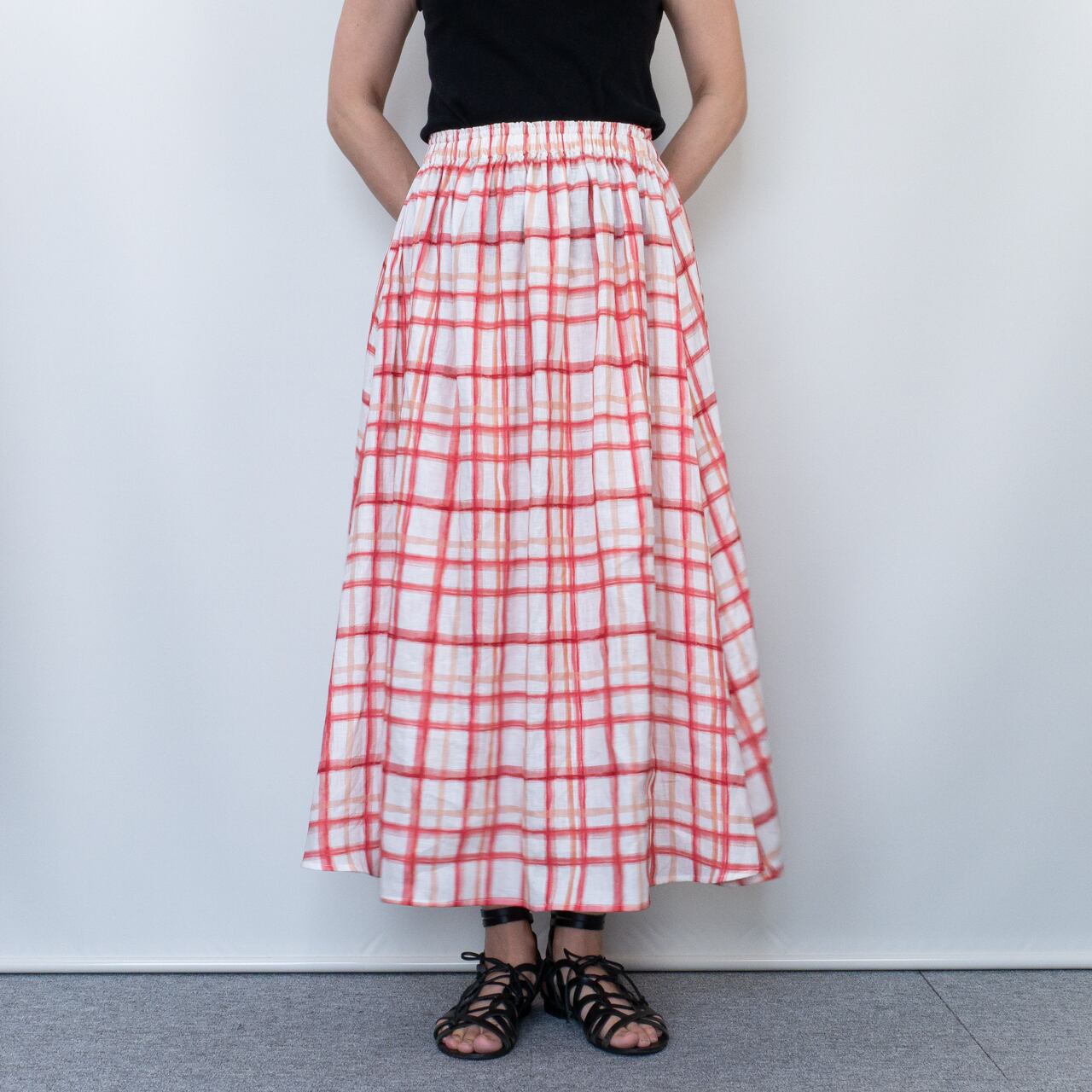 フレンチカジュアルなリネンロングスカート【赤/白】