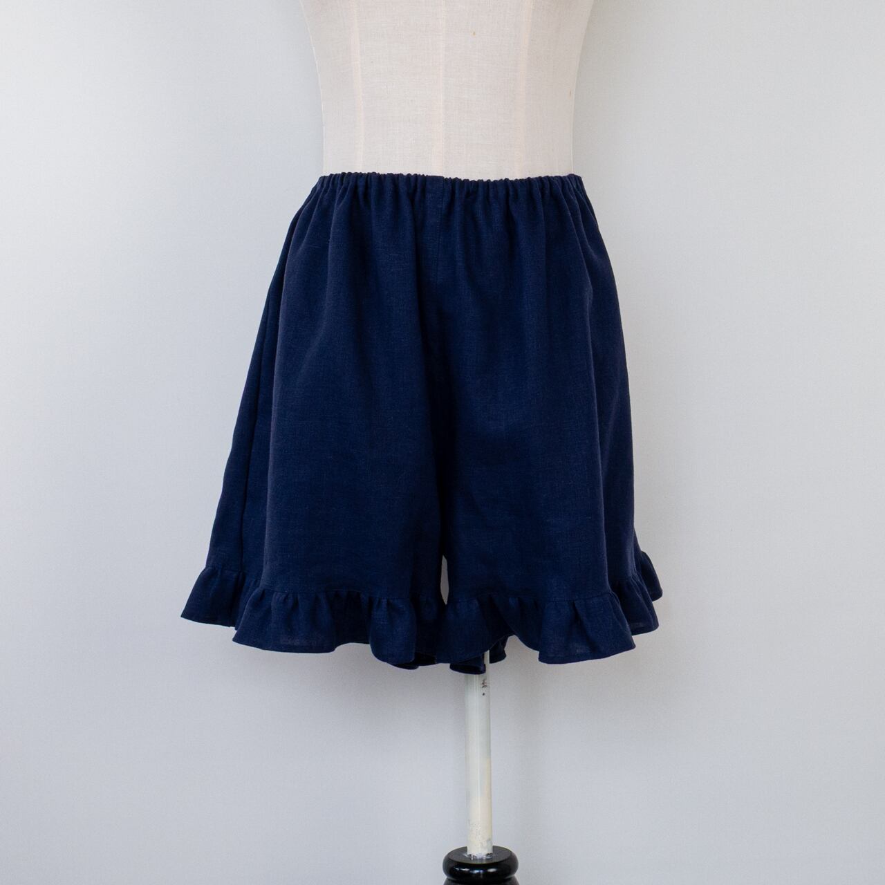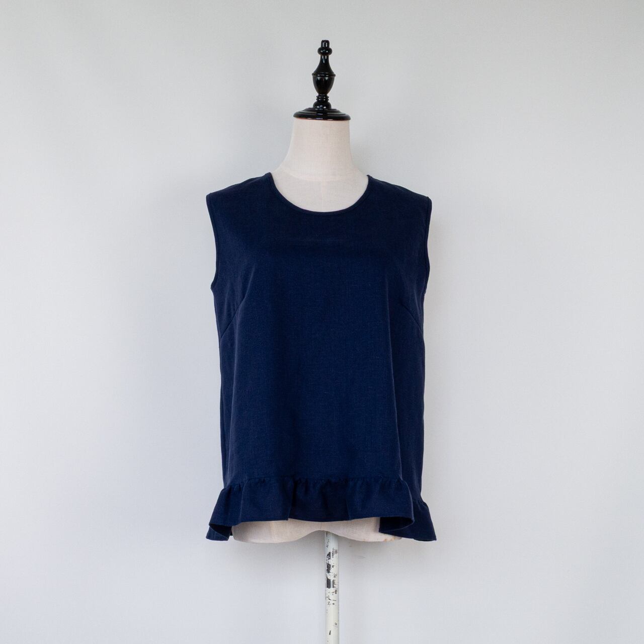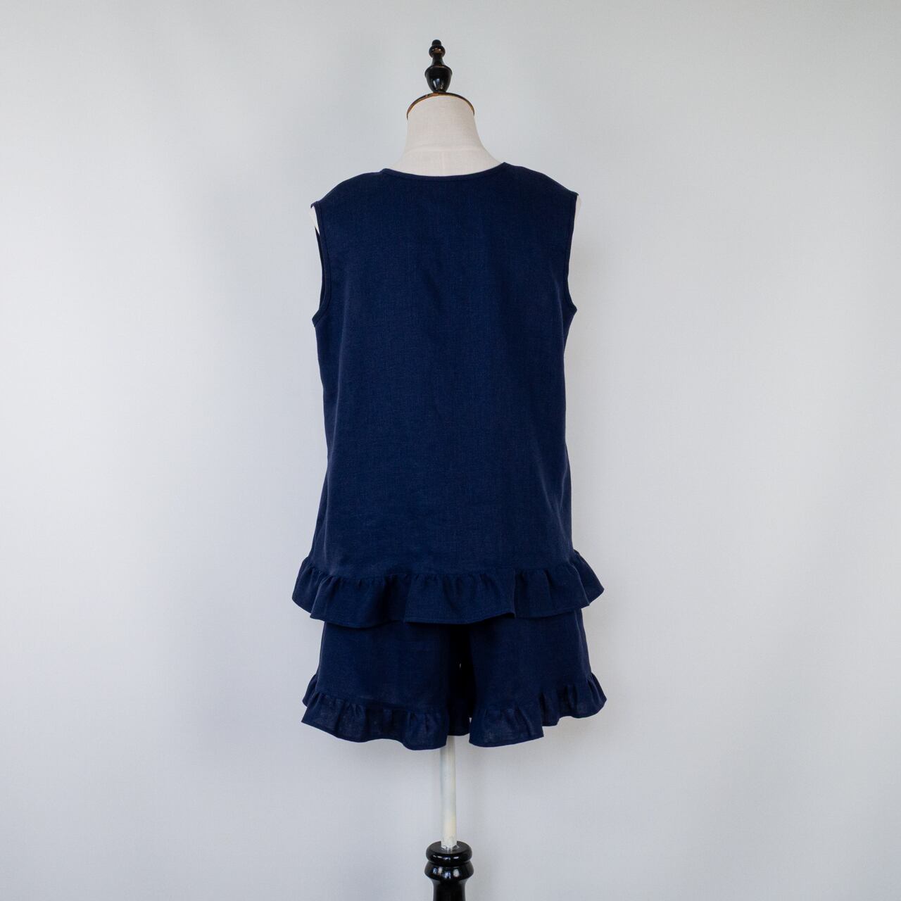 ちょっぴり可憐なリネンのルームウェア タンクSET【ブルーブラック】