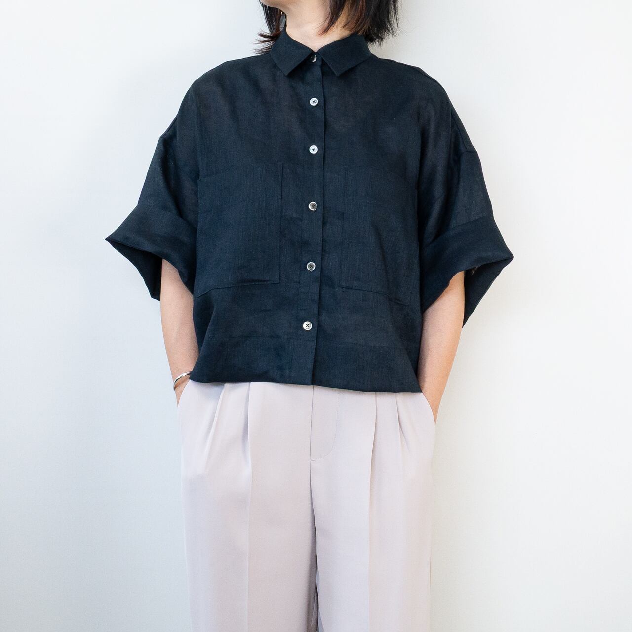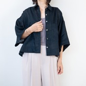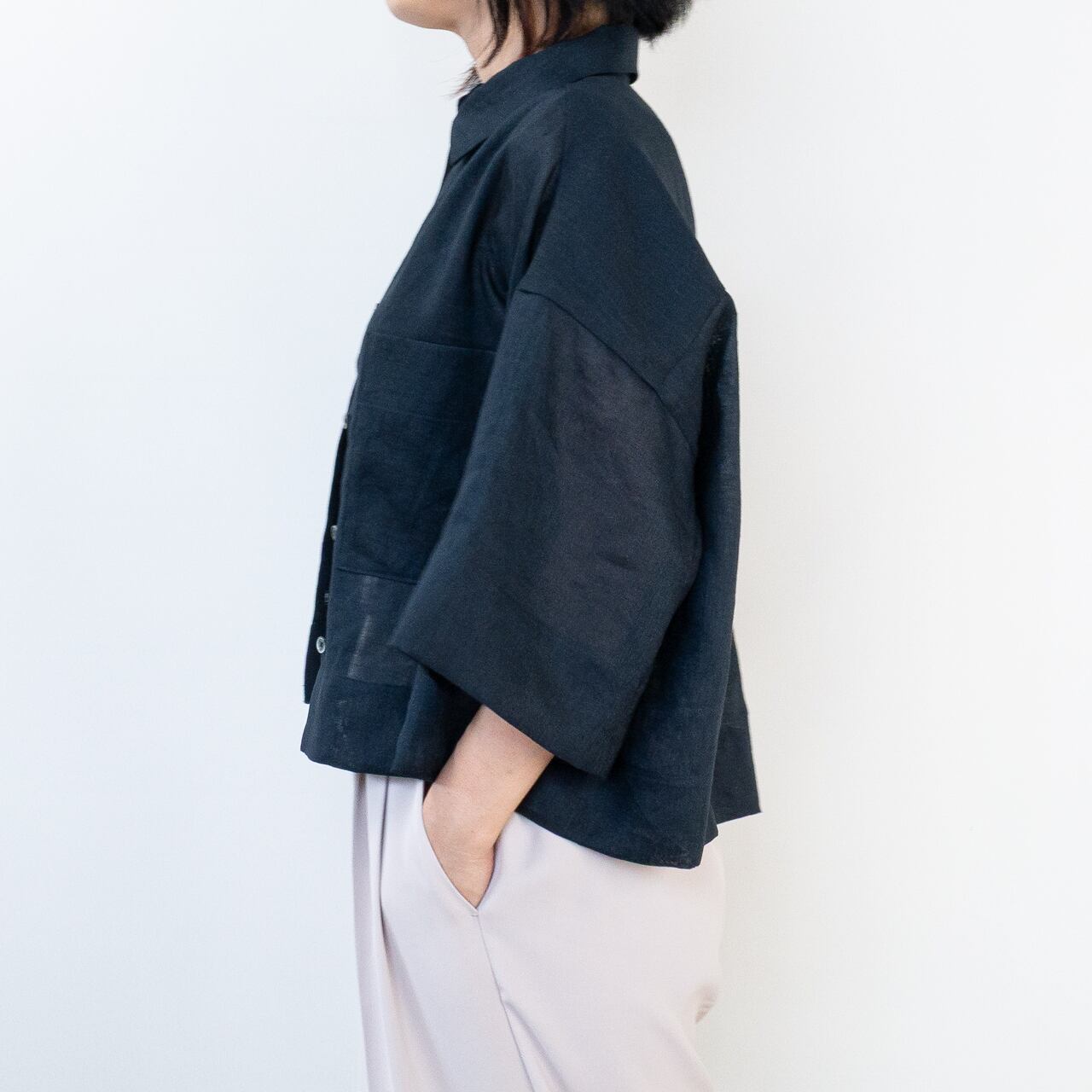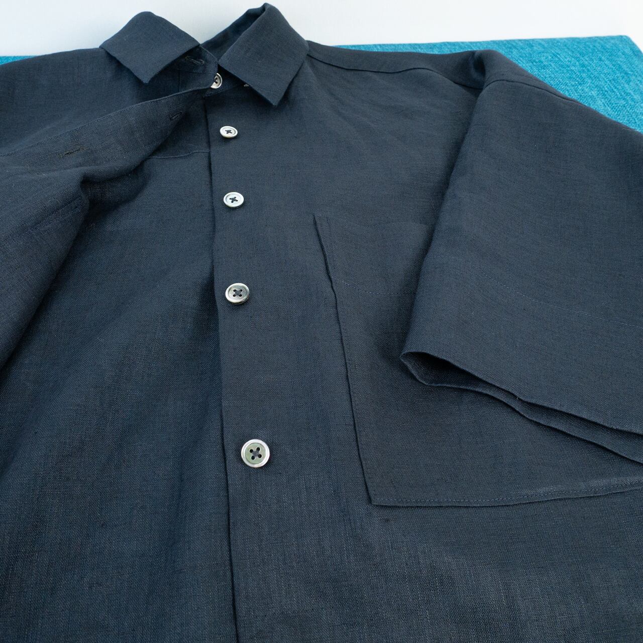 上質リネンのシアーなゆったりショートシャツ【墨黒ネイビー】