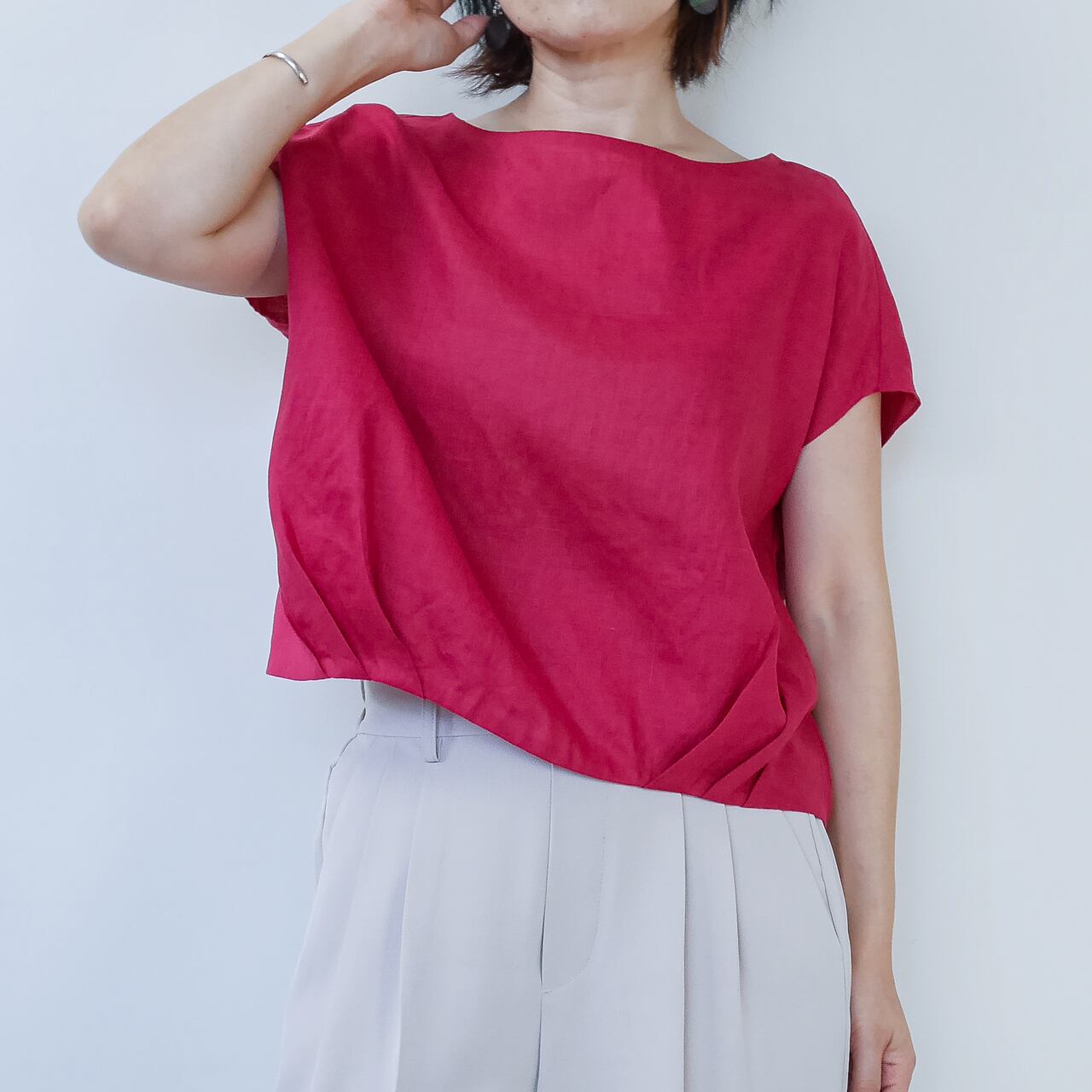 艶やかリネンのフレンチスリーブトップス【ルビーレッド】