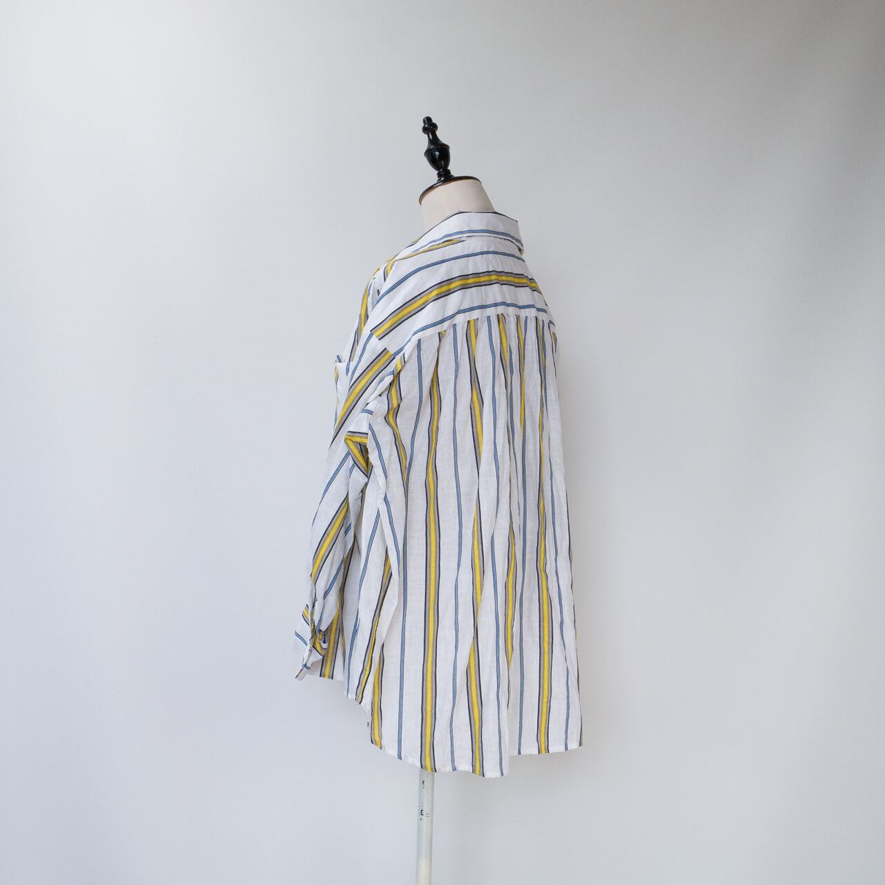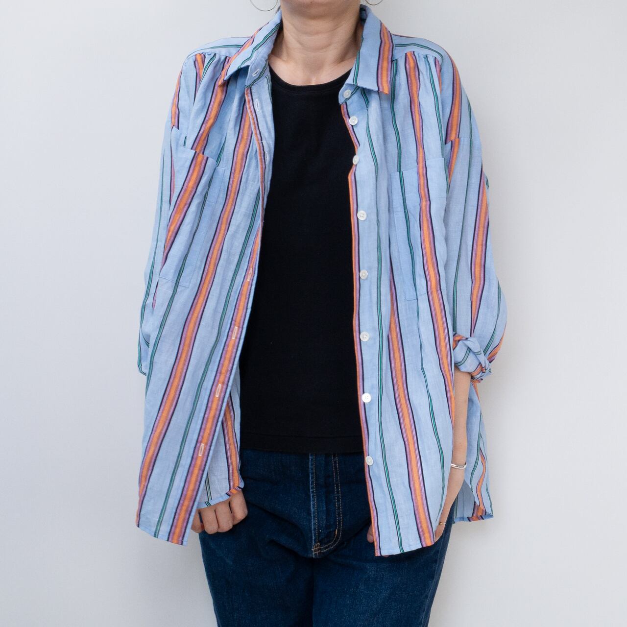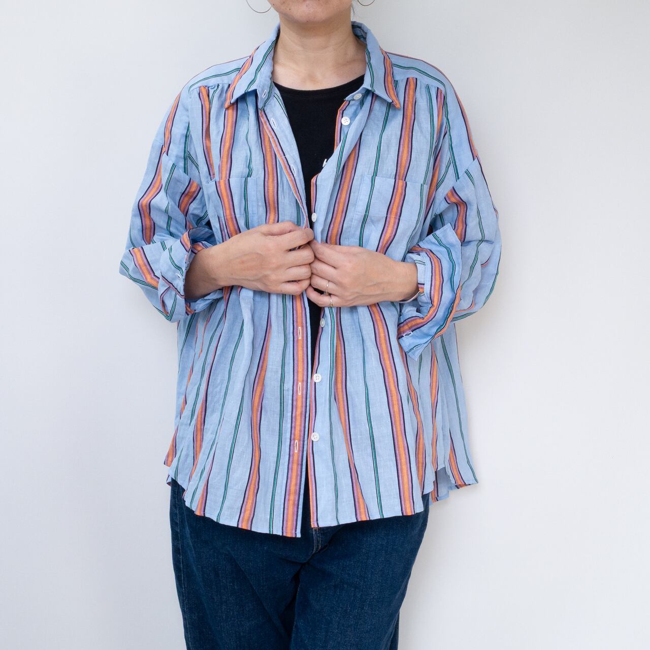 マルチストライプのリネンシャツ【アイボリー・スカイブルー】