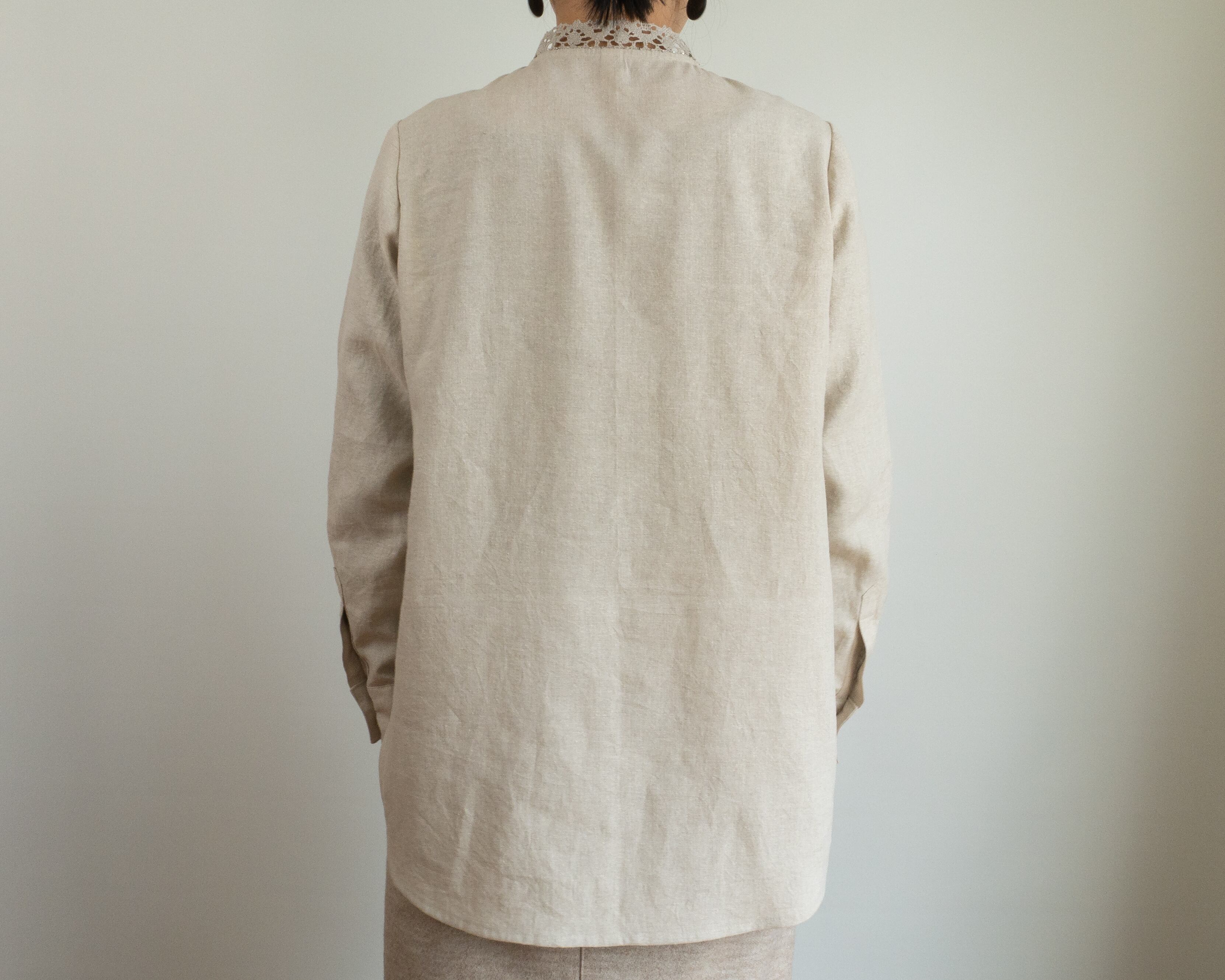 ・首のラインにきれいに沿った詰まり気味のレーススタンドカラー
