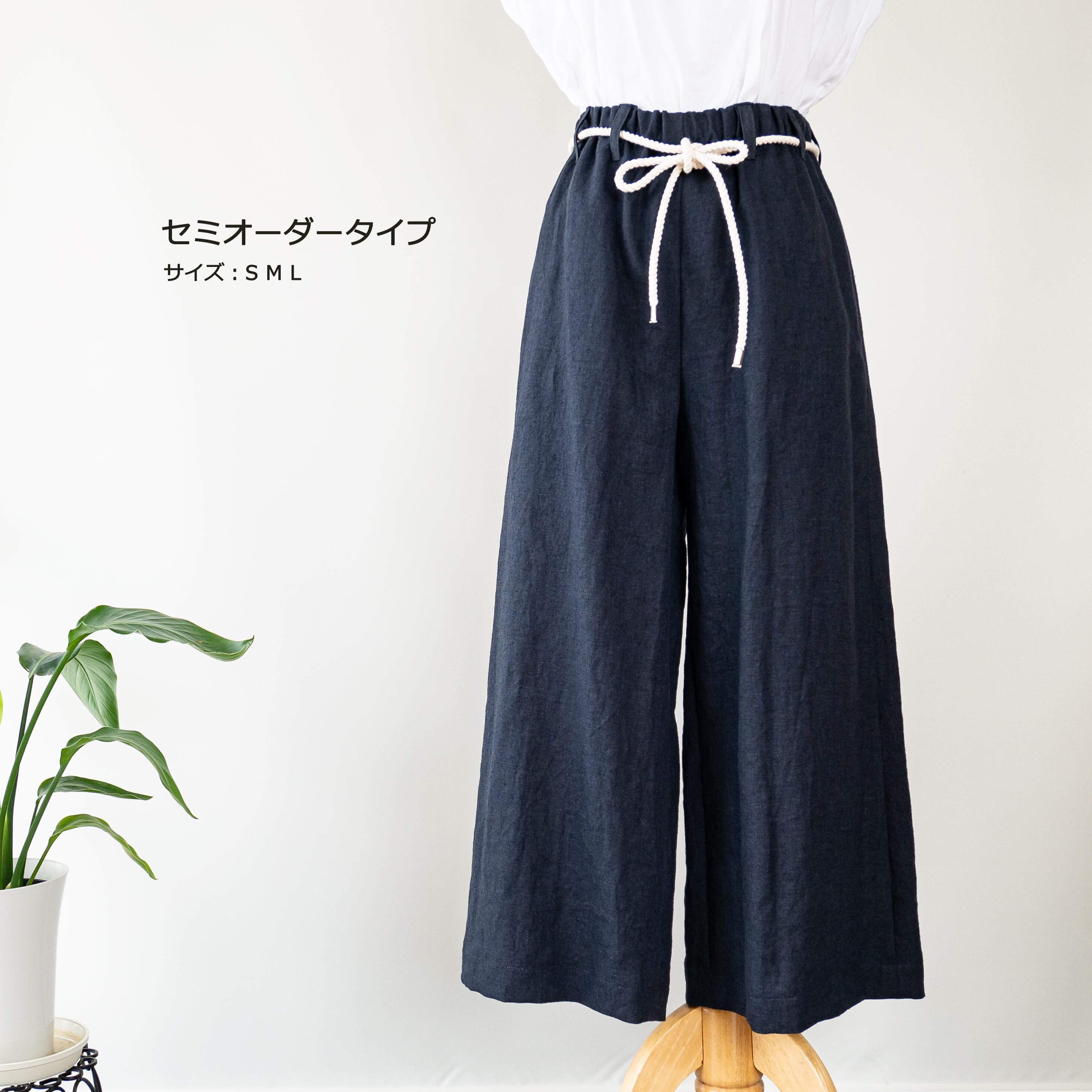 受注制作★ラミーリネンのマリンなワイドパンツS/M/L【濃紺】