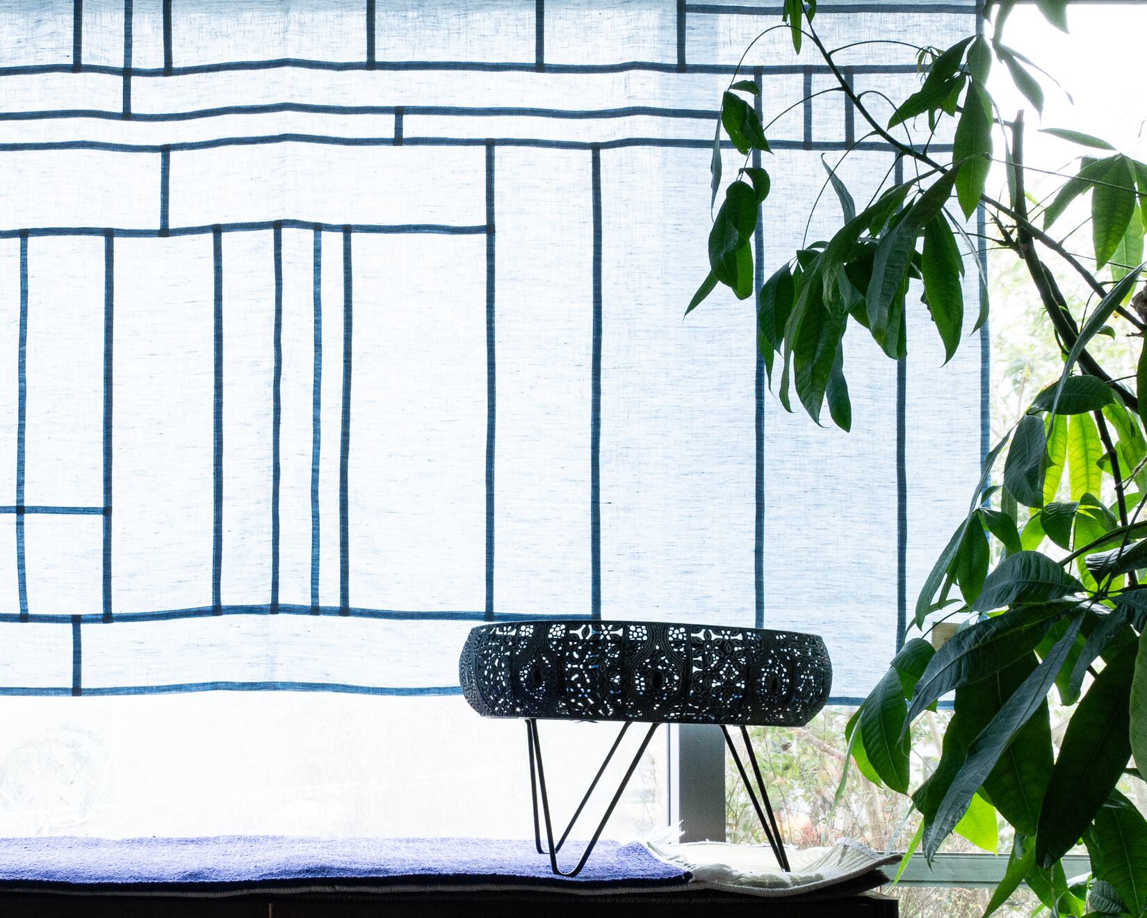 陰影を愉しむリネンの飾り布C 【ソフトブルー・103x170・間仕切りカーテン】