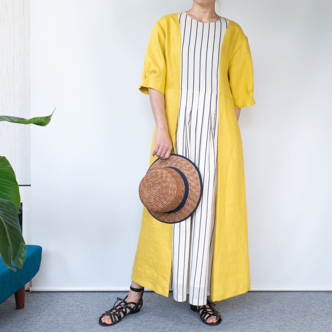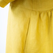 タンポポイエローのゆったりマキシドレス【イエローリネン×ストライプ】