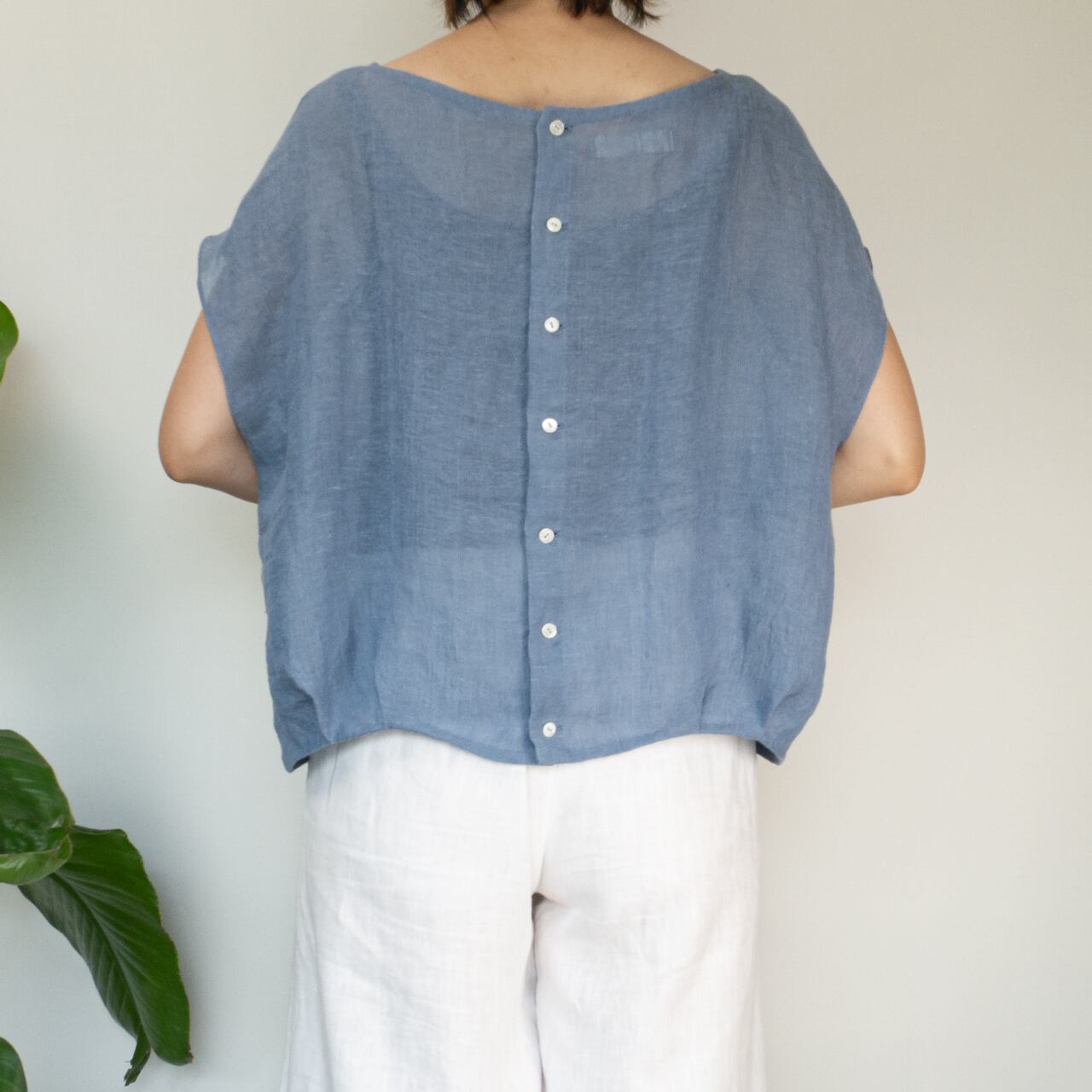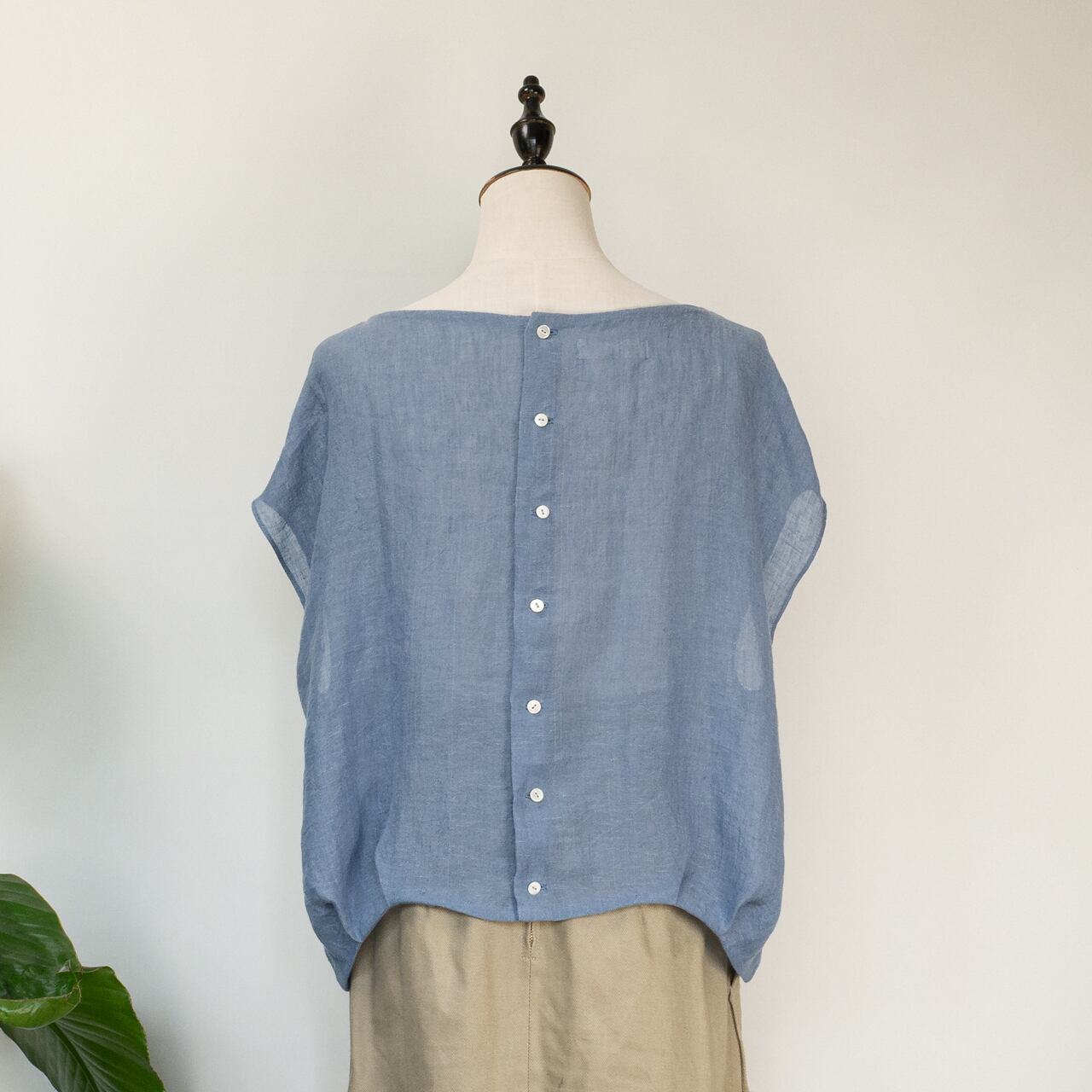 リネンガーゼの2WAYトップス【グレイッシュブルー】