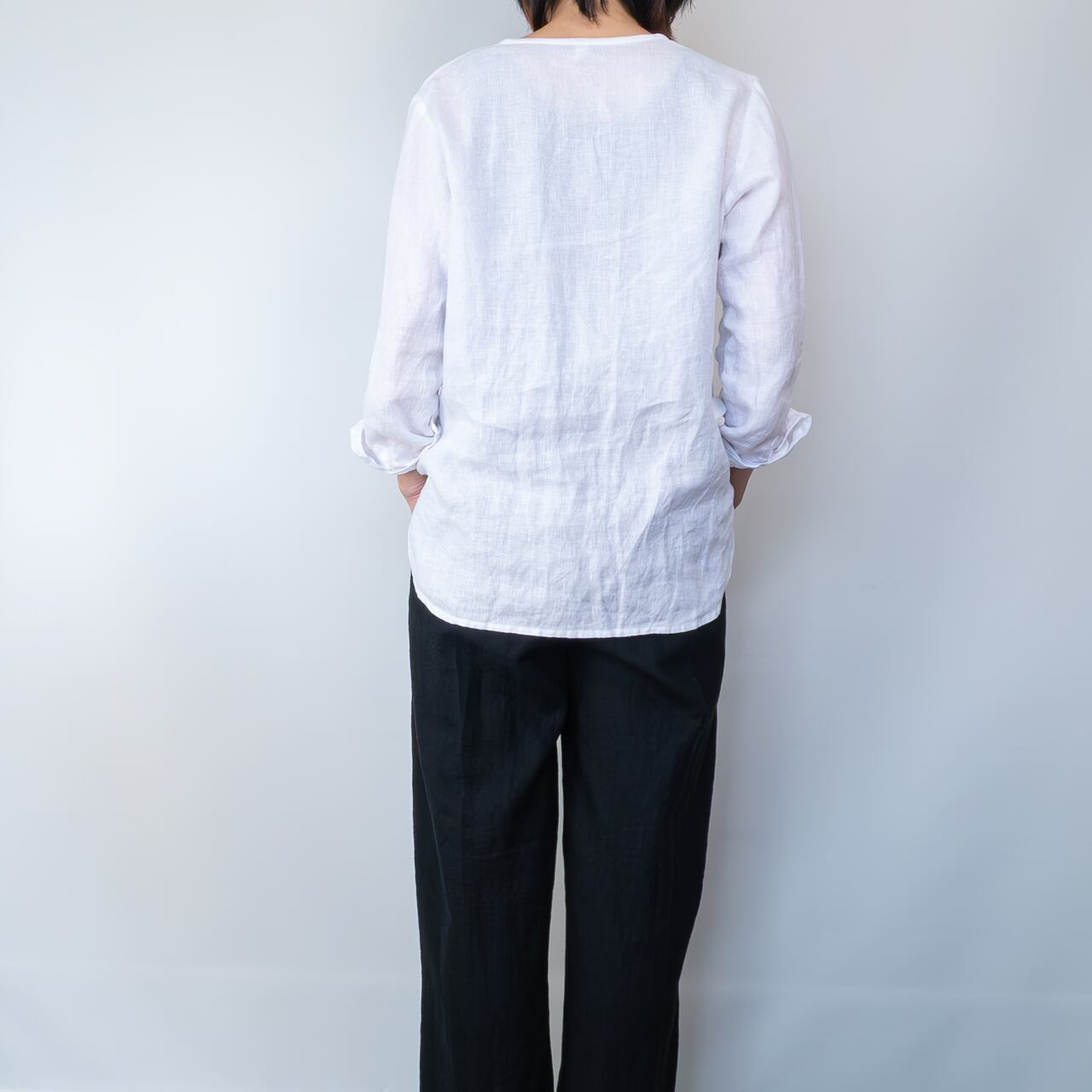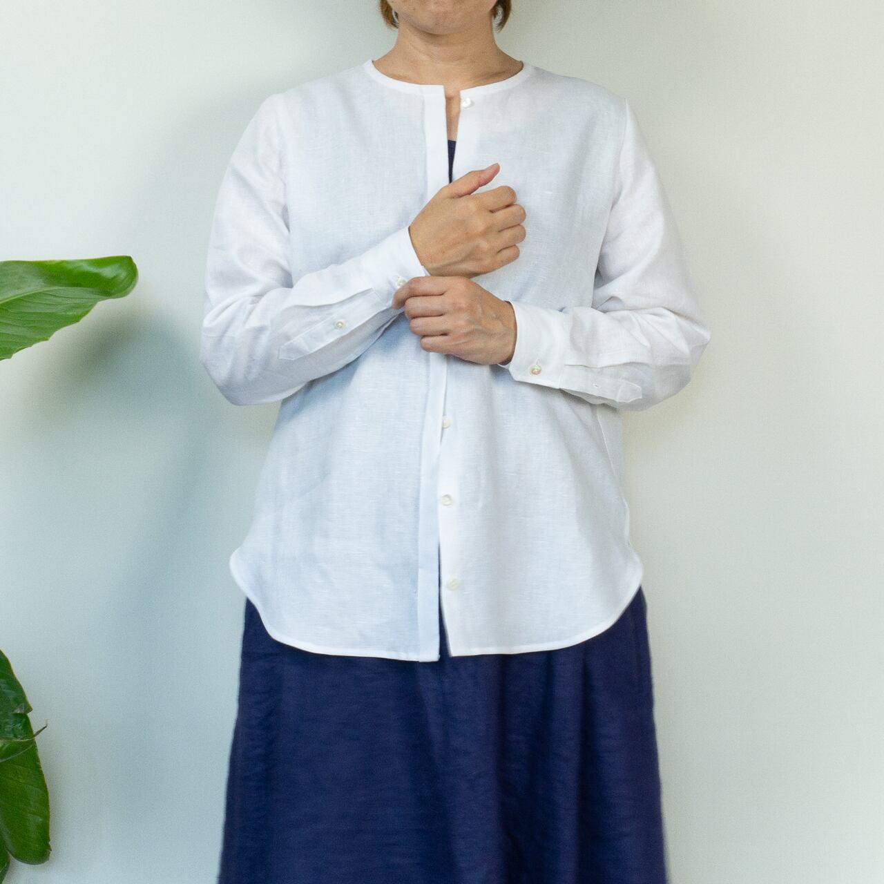 洗いざらしが気持ちいいシンプルリネンシャツ【白】