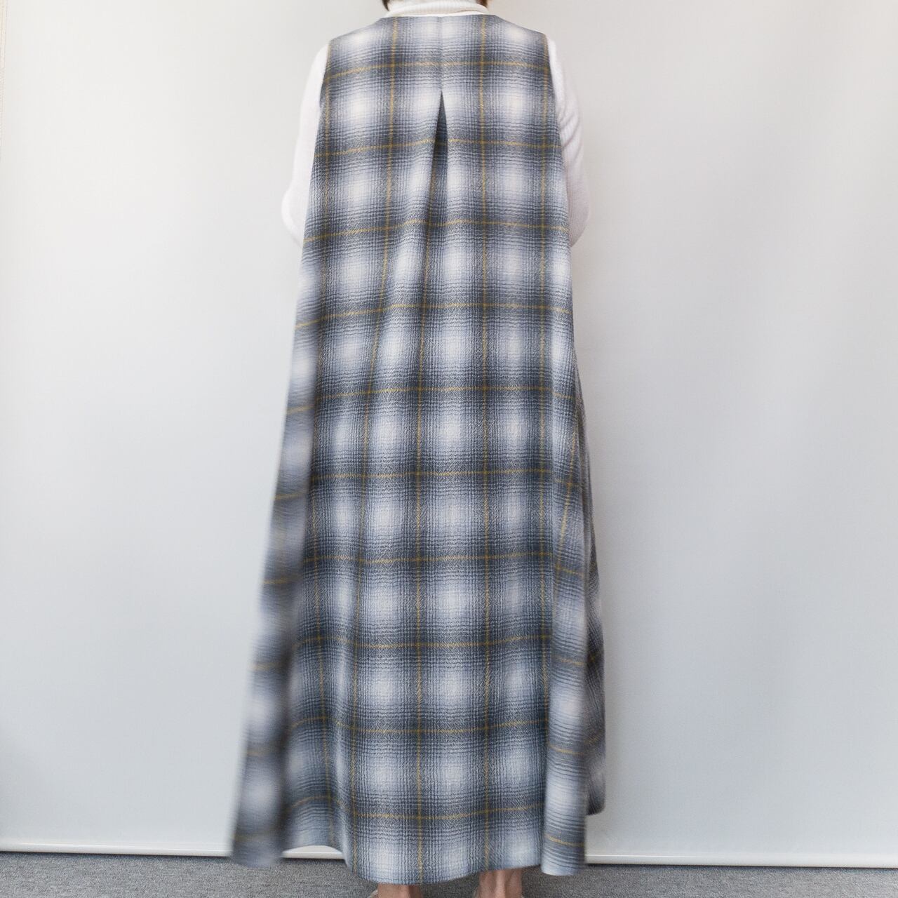 ふんわりウールのマキシドレス【グレー×白×イエロー】