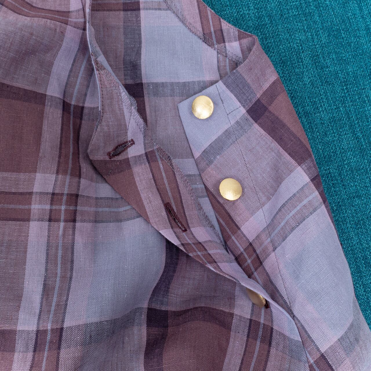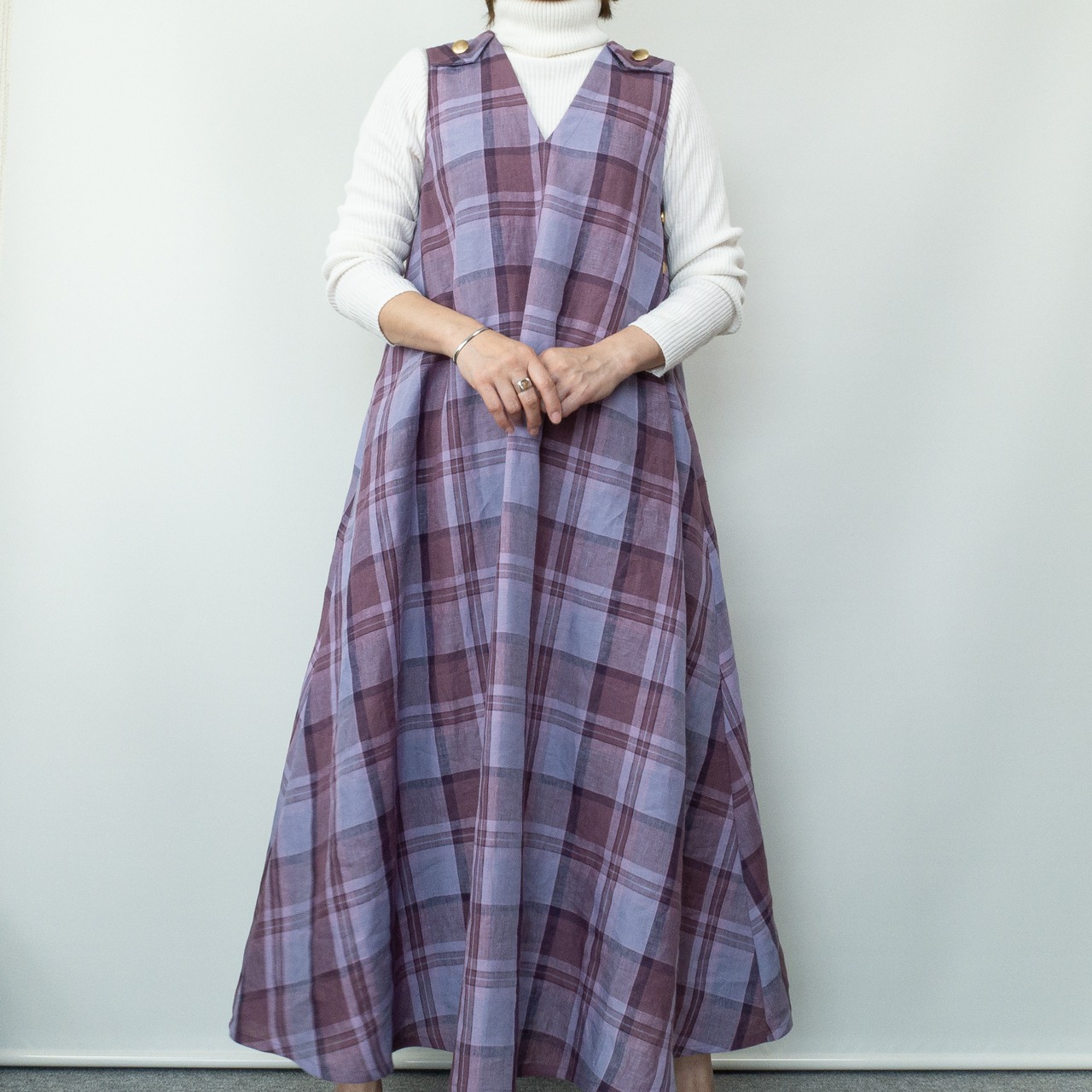 ドレープたっぷりのシックなチェックリネンドレス【モーヴ】